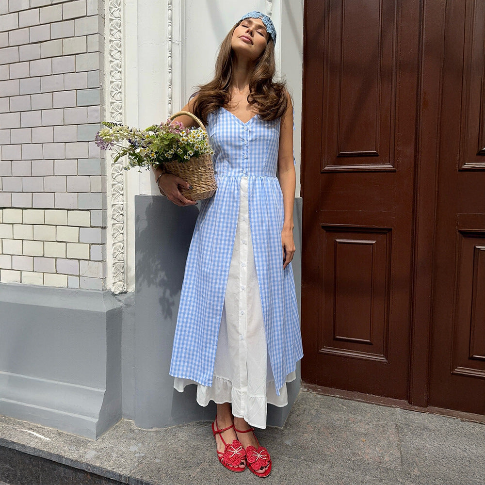 Plaid Side Slit Dress